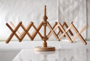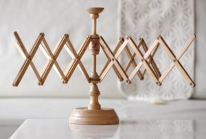 傘撐(Yarn Swift/Umbrella Swift)是用來把絞線(Hank)撐開,捲成線球(Yarn Cake/Ball)的編織工具。