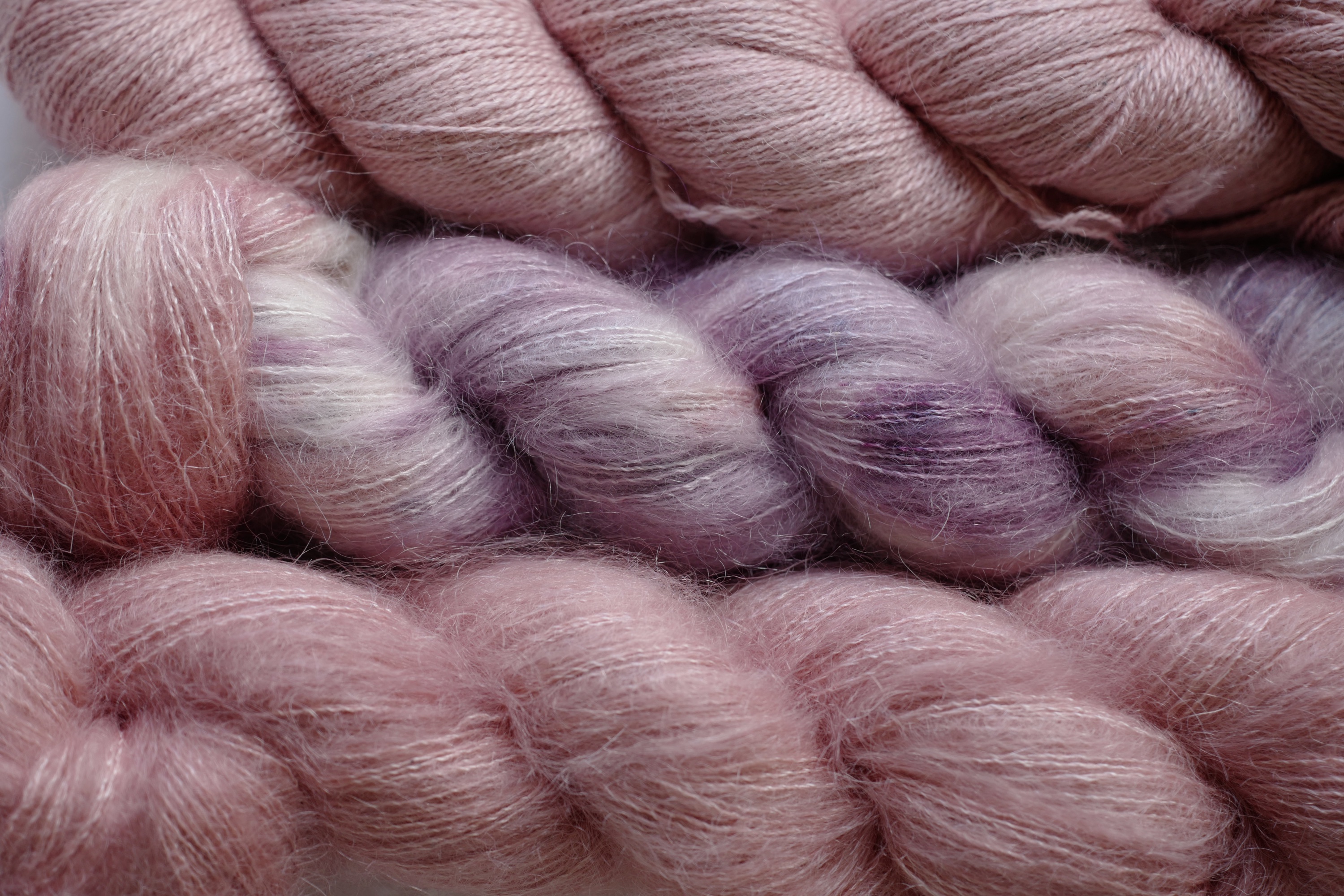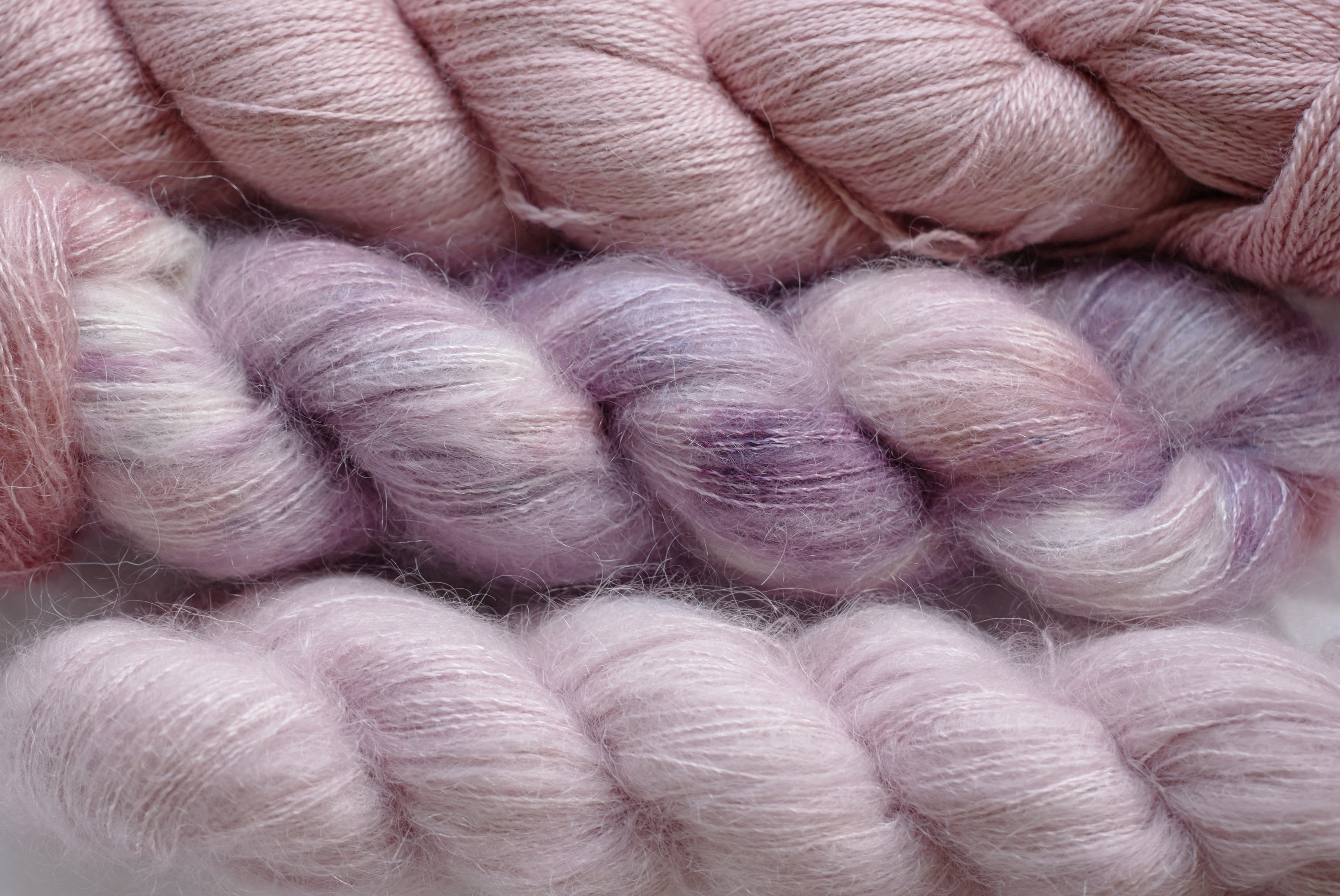 是非常襯托膚色的配色,質地輕柔,可以兩股或三股一起織,創造不同層次的感覺!