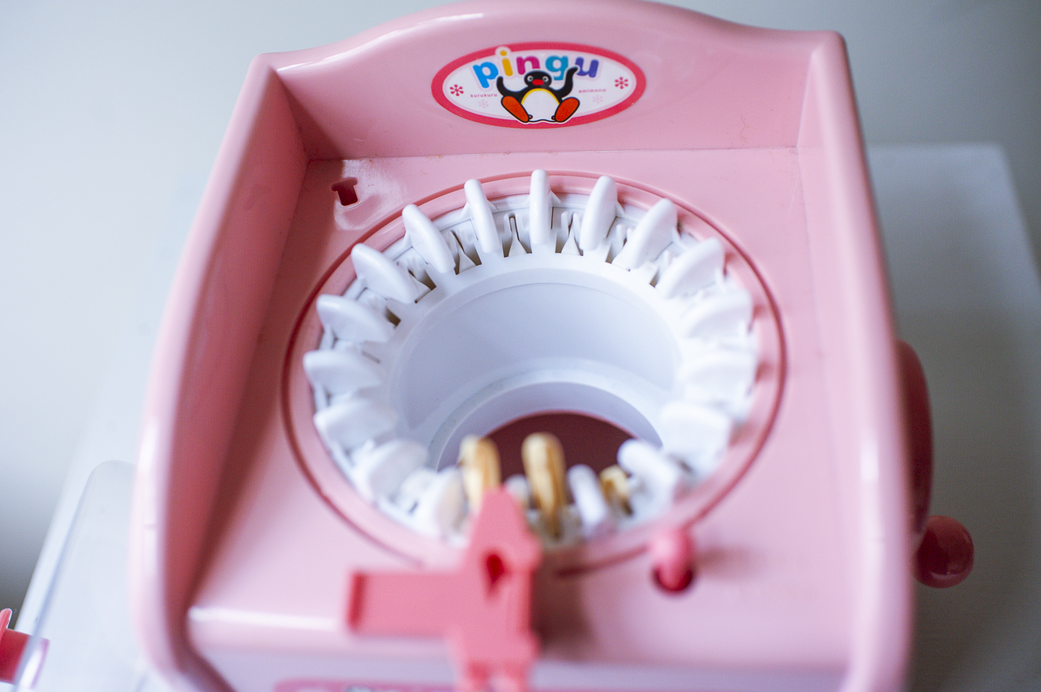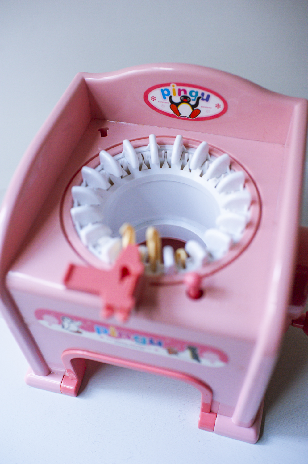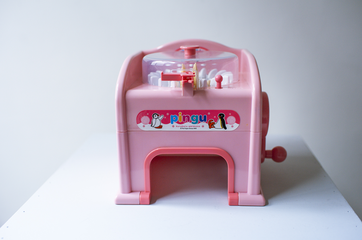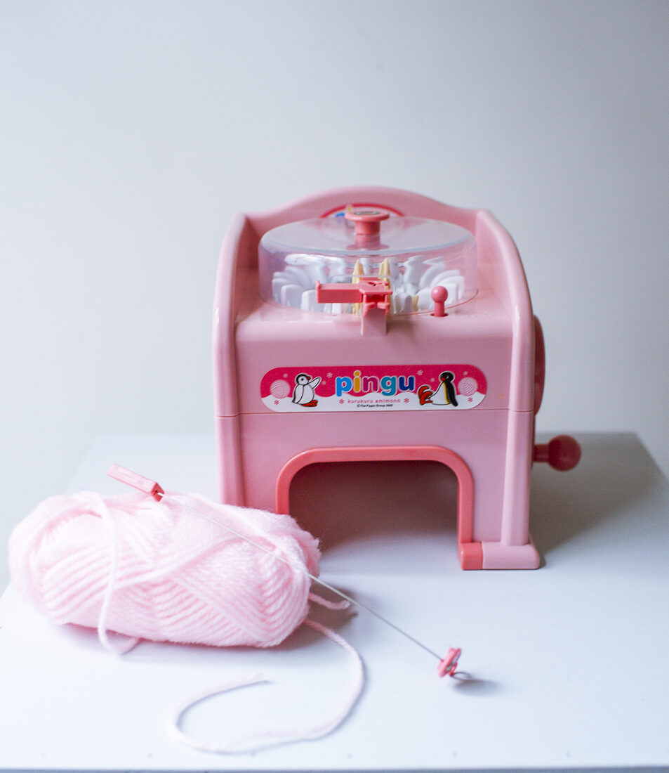 由日本 BANDAI 於 1998 年發行的 Pingu 編織機,是相當可愛的復古逸品。簡單好上手的搖桿設計,讓你不需要深厚的編織功力,也能輕鬆製作出充滿溫度的手作小物。