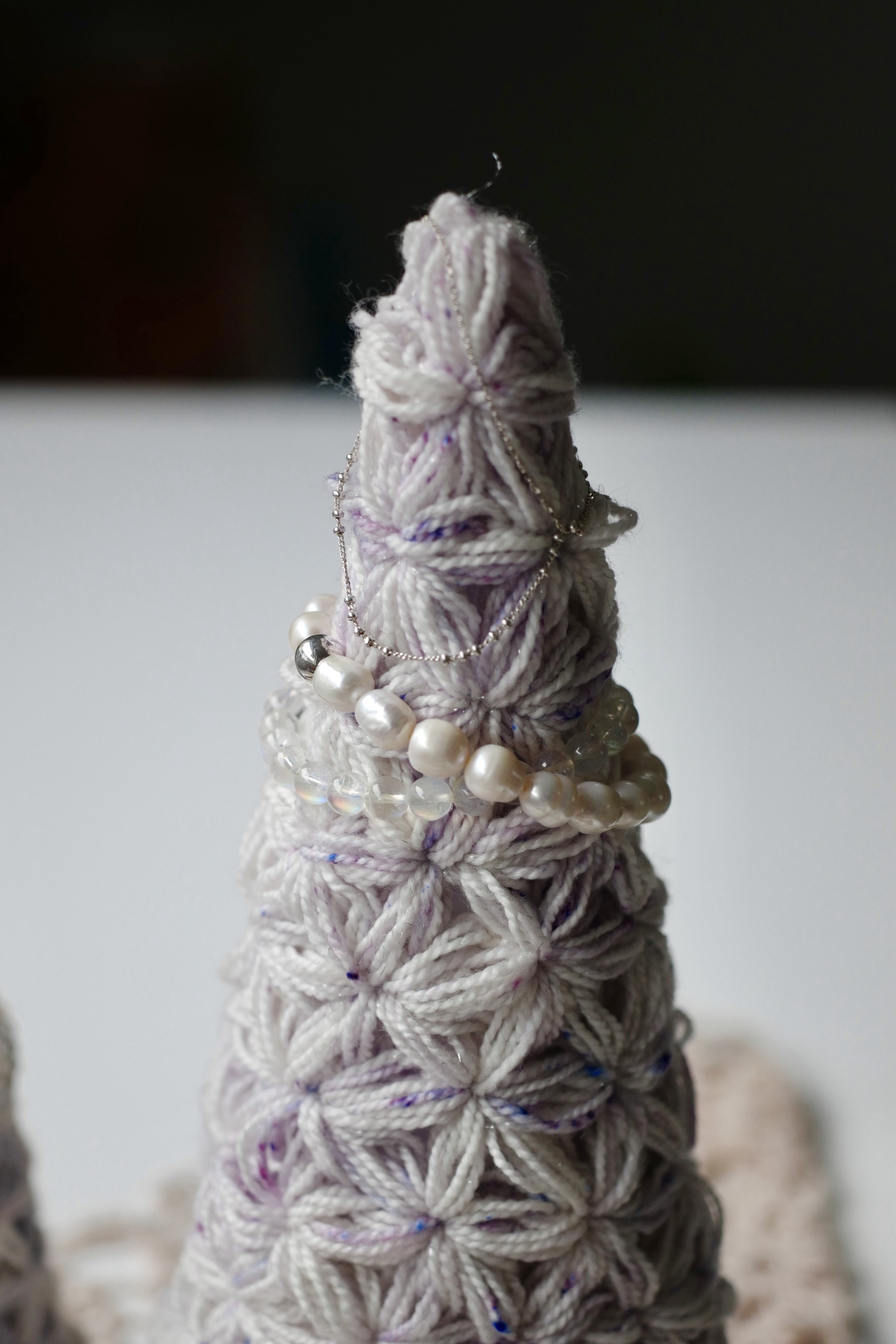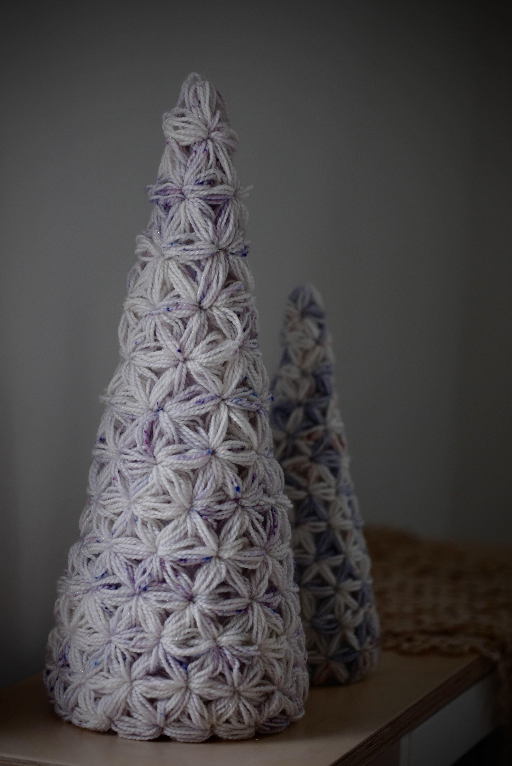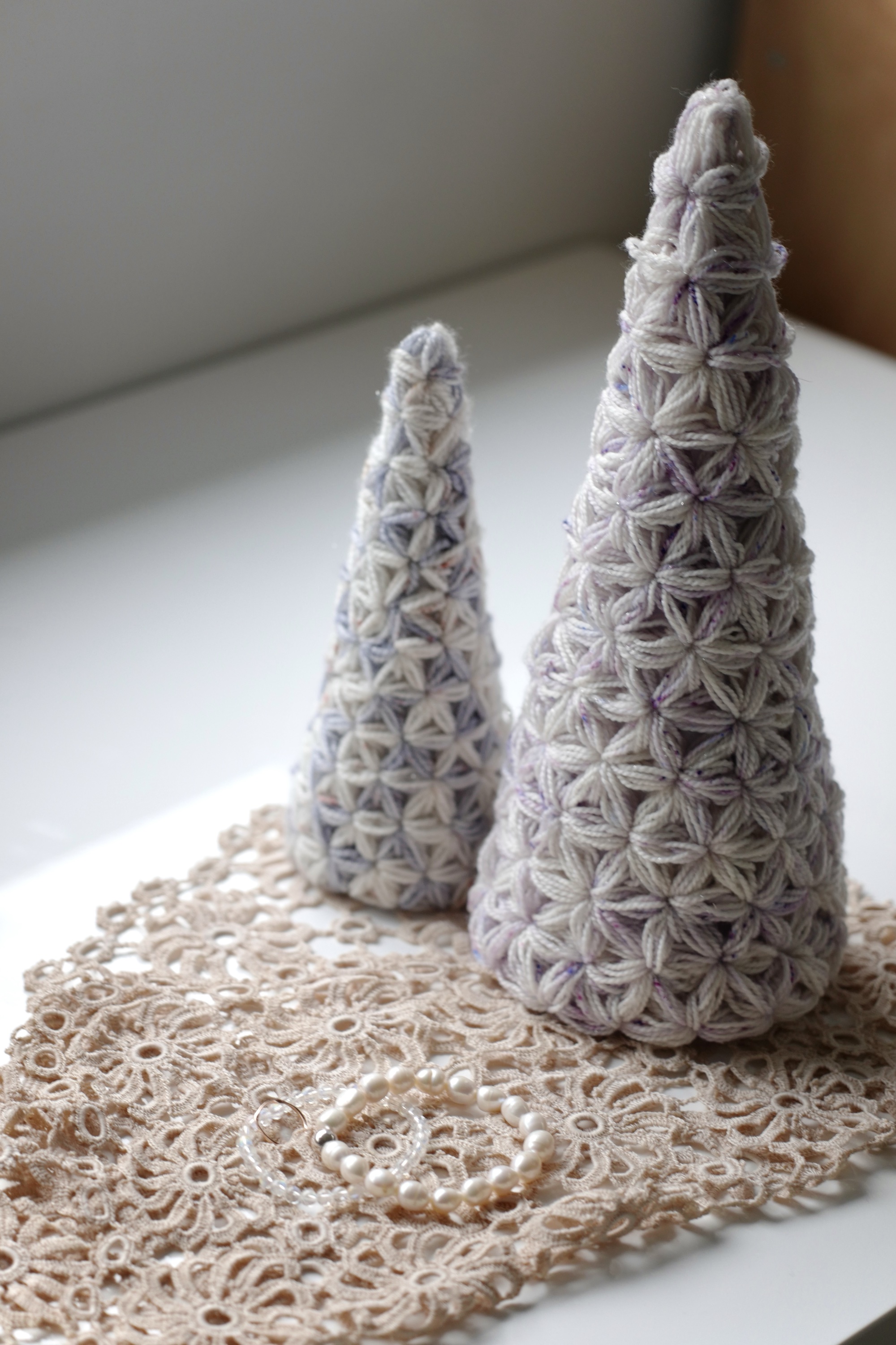 以優雅的茉莉花針法搭配星光線,製作一棵優雅不落俗套的聖誕樹
