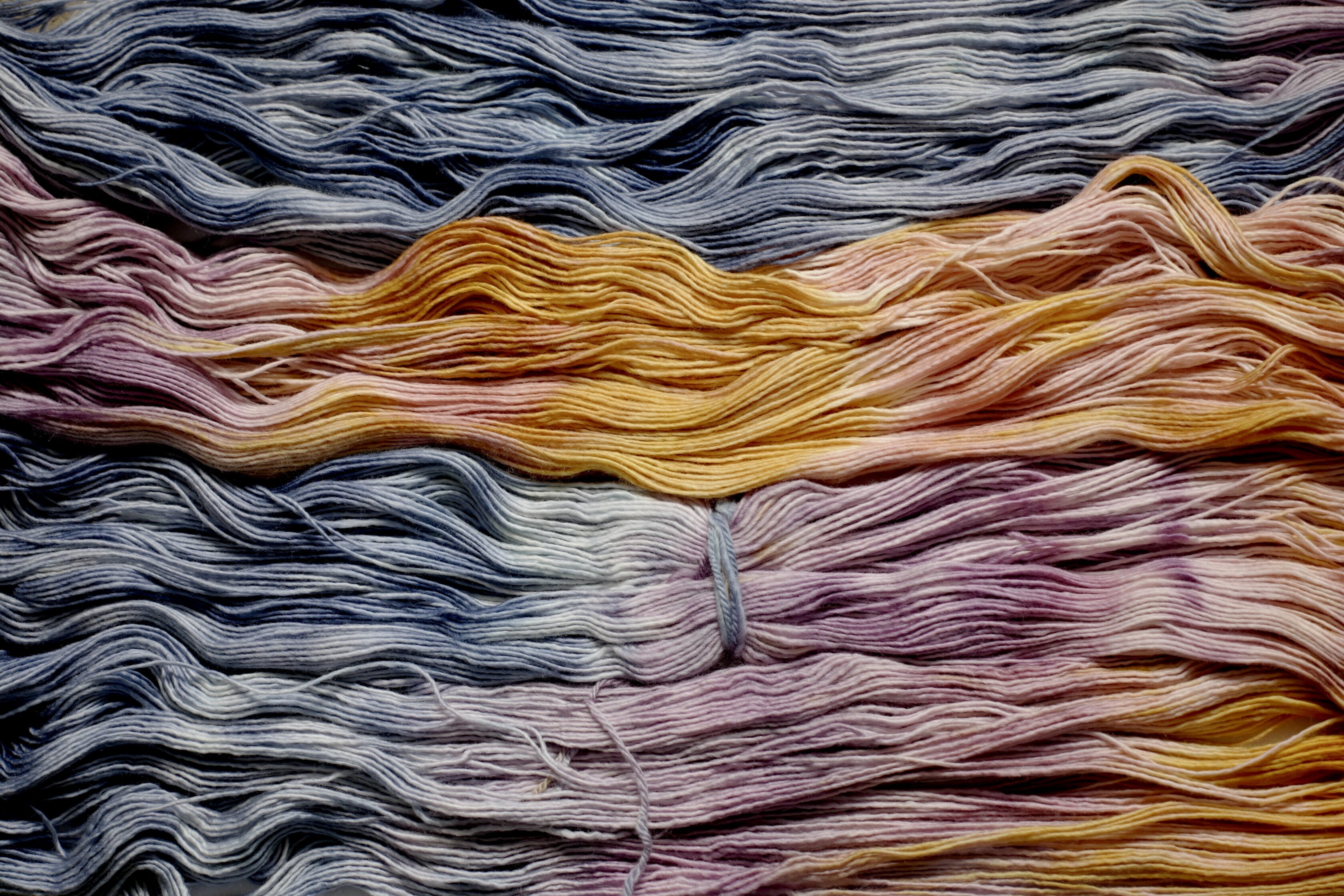 單紡線少了纏繞結構,觸感更柔順,較高的線重帶來更豐富的質感與保暖度。色彩層次飽滿,略帶暈染效果,使織品如印象派畫作般流動自由。
